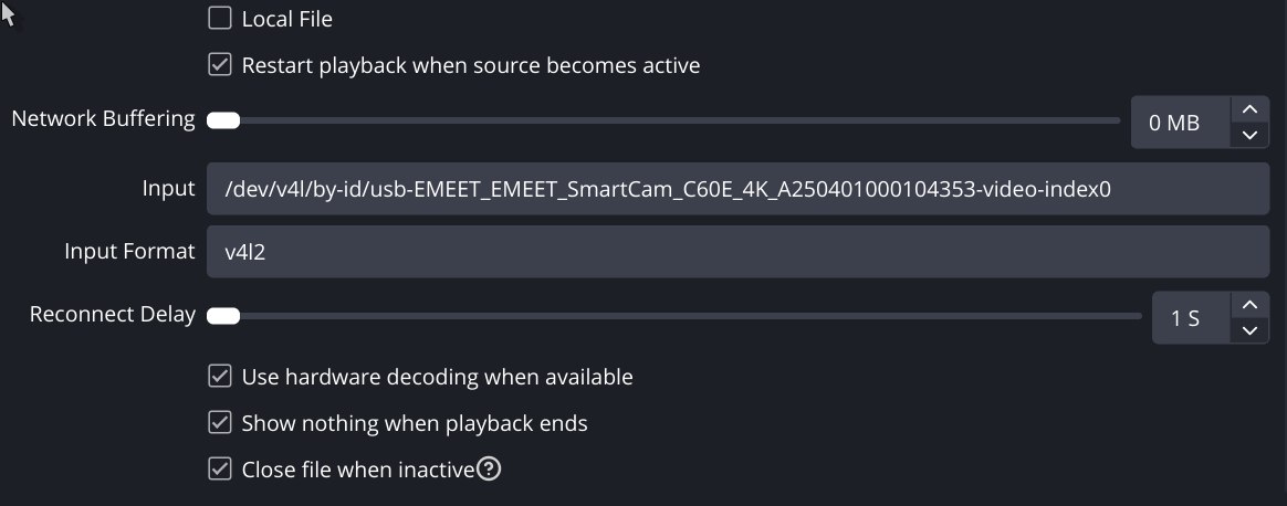 よく取り違えるので、Media Source に /dev/v4l/by-id/* などを渡した方が良いということです。